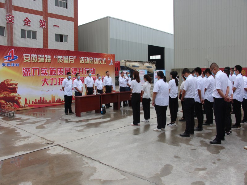 本次質(zhì)量月活動以“深入實施質(zhì)量提升行動、大力促進質(zhì)量強國建設(shè)”為主題。安徽瑞特黨支部書記、總經(jīng)理施松在宣讀建材公司“質(zhì)量月”活動文件和安徽瑞特質(zhì)量月活動方案后作動員講話,他強調(diào):一要加強“質(zhì)量月”活動組織領(lǐng)導(dǎo),發(fā)掘提質(zhì)增效典型事跡,營造崇尚質(zhì)量的濃厚氛圍,確?;顒娱_展取得良好實效;二要牢固樹立質(zhì)量強國新發(fā)展理念,持續(xù)鞏固提升全員質(zhì)量管理意識,激發(fā)全員將質(zhì)量管理要求落實在具體行動上;三要切實推進質(zhì)量提升行動,創(chuàng)新質(zhì)量技術(shù)管理思路,補齊技術(shù)研發(fā)短板,增強產(chǎn)品市場競爭力;四要抓好過程管理缺陷的整改落實,善于辨識各生產(chǎn)環(huán)節(jié)質(zhì)量風險點,以高度的責任感和強有力的舉措,推動公司實現(xiàn)高質(zhì)量發(fā)展。