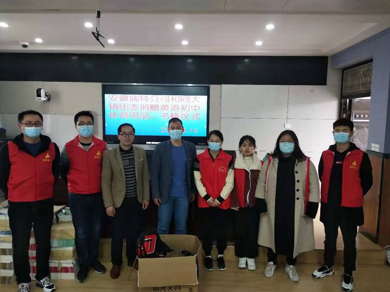 三月春風(fēng)入校園,雷鋒精神暖人心。3月16日下午,安徽瑞特團支部志愿者服務(wù)隊聯(lián)合同大鎮(zhèn)團委前往同大鎮(zhèn)黃道中學(xué)開展雷鋒月助學(xué)活動。本次活動向黃道中學(xué)捐贈200余本課外讀物和足球、籃球、羽毛球拍、乒乓球拍等各類體育用品。