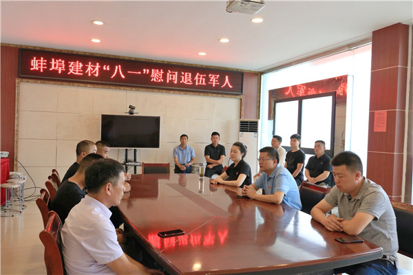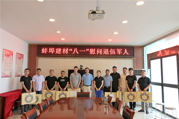 為紀念中國人民解放軍建軍93周年,8月5日下午,蚌埠建材黨支部開展了對退伍軍人職工的慰問活動。公司領導班子通過送去慰問品和祝福的方式向退伍軍人職工致以節日的問候,把企業的溫暖和關愛送到他們手中,感謝他們為公司發展中做出的貢獻,并鼓勵他們立足本職工作,繼續發揚軍人退伍不褪色的精神,在平凡的崗位上再立新功。