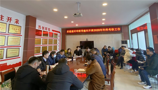 1月11日上午,安建建材公司副總經理廖紹鋒帶領考核組一行赴蚌埠建材開展2020年度綜合考核,安建建材副總經理、蚌埠建材黨支部書記、總經理陶良敬、蚌埠建材公司領導班子、各中心負責人參加會議,會議由安建建材公司財務部副部長龐春飛主持。