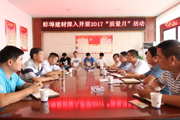 在檢查開始前的溝通會上,蚌埠建材副總經理施松向檢查組匯報了蚌埠建材2017年“質量月”活動方案及開展情況,總經理陶良敬匯報了蚌埠建材1—8月份質量管控總體情況,工作亮點、存在的主要問題以及改進意見。