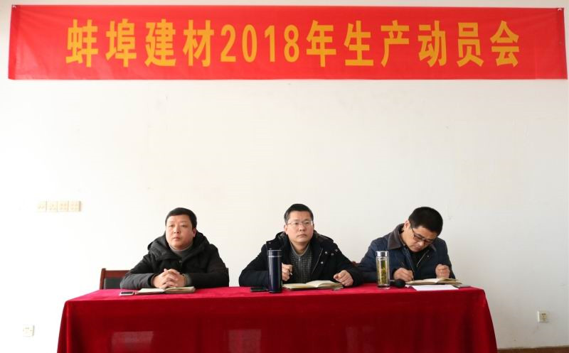 陽春三月,萬物復蘇。蚌埠建材2018年生產動員會于3月1日隆重召開,參加會議的有公司領導,安全生產管理中心、營銷管理中心、質量(研發)管理中心各部門負責人、業務骨干、生產基層全體員工以及外協設備所有人員和操作人員,會議由安全生產管理中心主任邵亞飛主持。