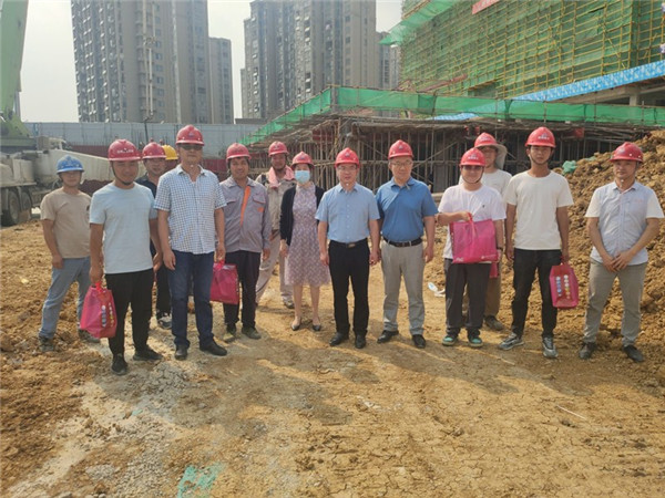 6月28日下午,蚌埠建材黨支部副書記、總經理朱明歡帶領公司領導班子,深入供應項目施工現場,開展安全專項檢查,并向奮戰在生產一線的員工送上夏季關懷。