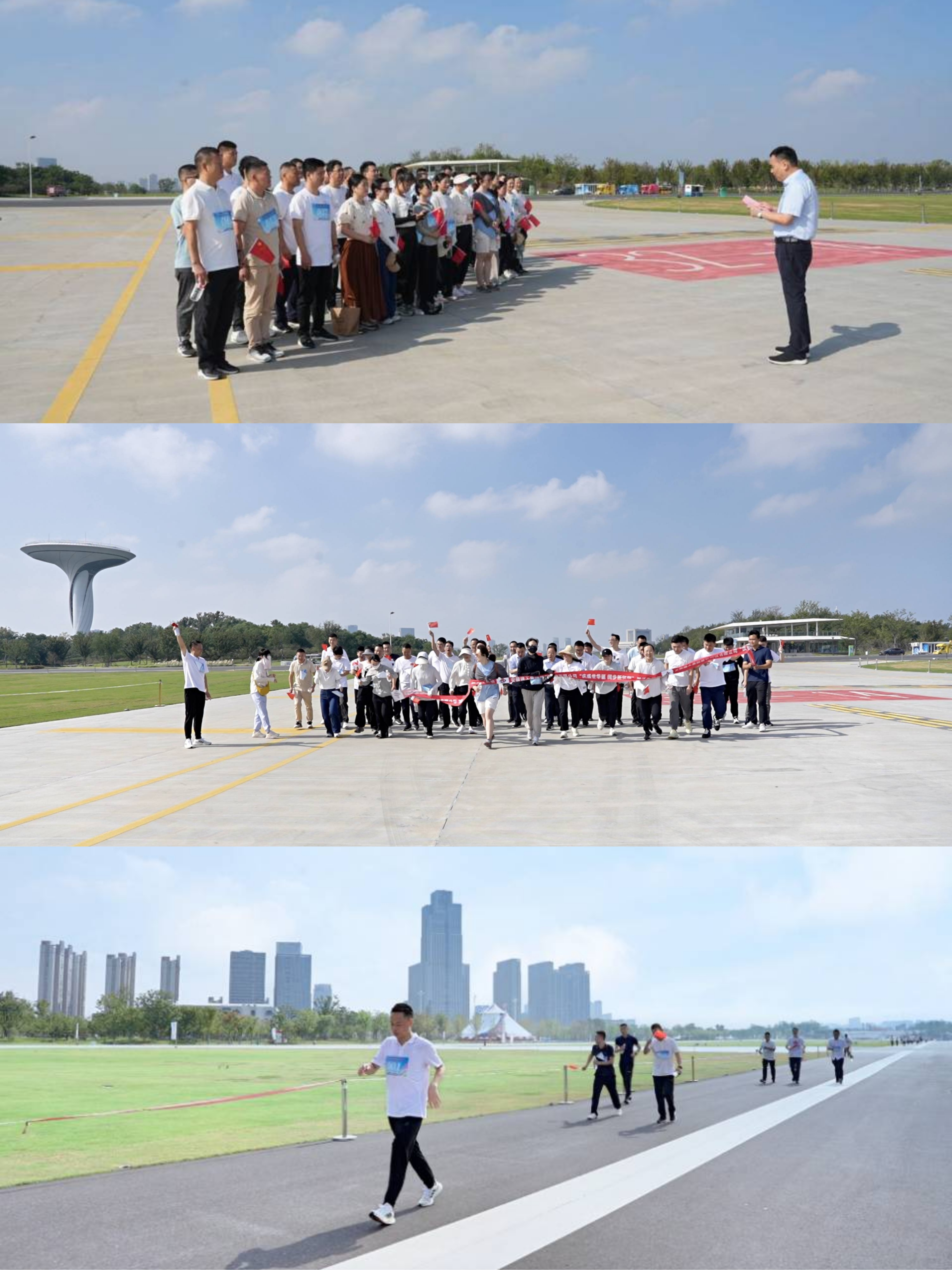 啟動儀式上,公司黨委委員、副總經理、工會主席邵佳致辭,隨后進行熱身運動,最后由公司黨委副書記、總經理張俊打響發令槍,宣布健步走活動正式開始。路線以駱崗航站樓南廣場為起點,沿原機場跑道一周,全程約6.5公里,途中設置2個打卡點。