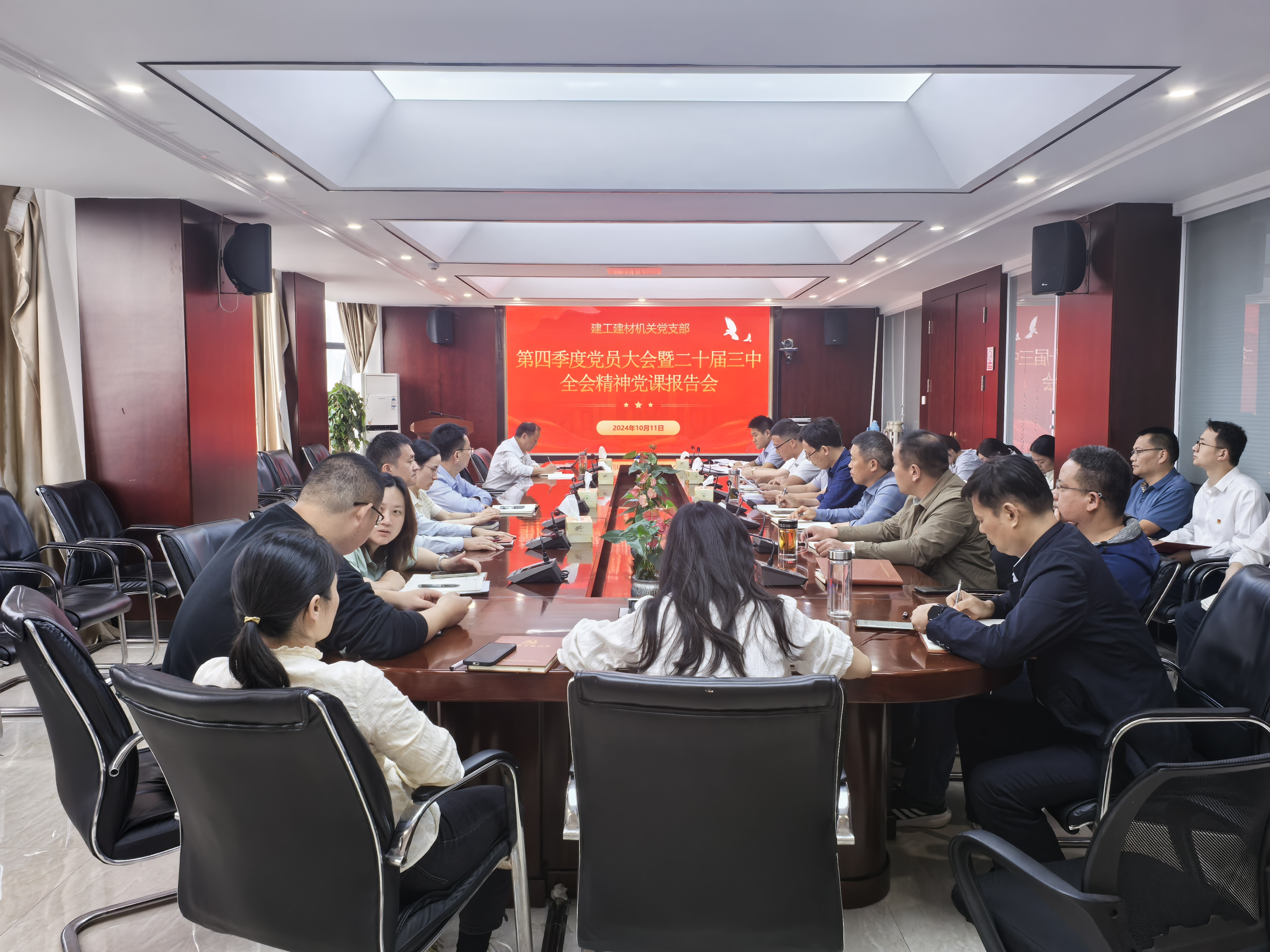 為深入學習貫徹黨的二十屆三中全會精神,推動全會精神落地生根,10月11日下午,建工建材機關黨支部召開第四季度黨員大會暨二十屆三中全會精神黨課報告會。會議由黨支部書記許長璽主持,機關全體黨員參加。