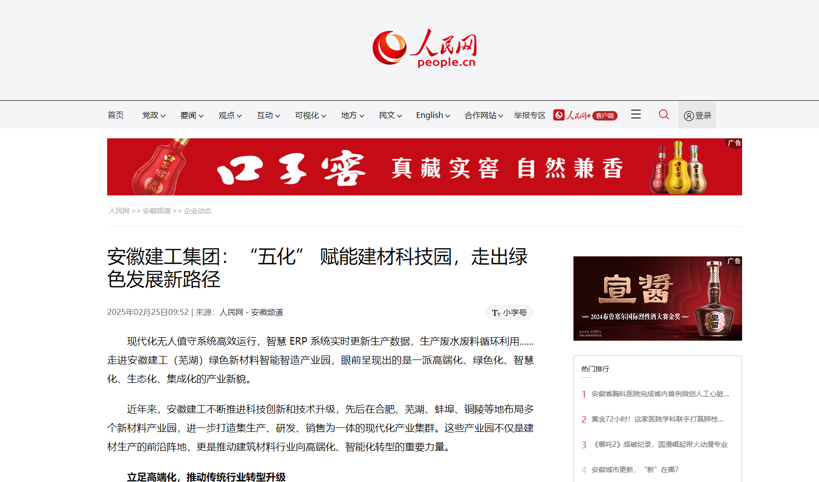 近日,人民網、安徽日報等多家媒體聚焦建工建材“五化”科技園布點工作,引發廣泛關注。