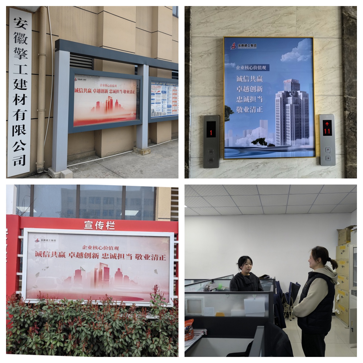 基層單位通過“三會一課”、每周例會等形式進行學習宣貫、研討交流,迅速將集團核心價值觀內容傳達到每一名干部職工,真正內化于心、外化于行。同時充分利用內部網站、宣傳欄、微信公眾號等多種渠道,全方位、多角度開展宣傳,增強員工的歸屬感和認同感。利用宣傳欄、展板橫幅等載體,持續營造濃厚的宣傳氛圍。