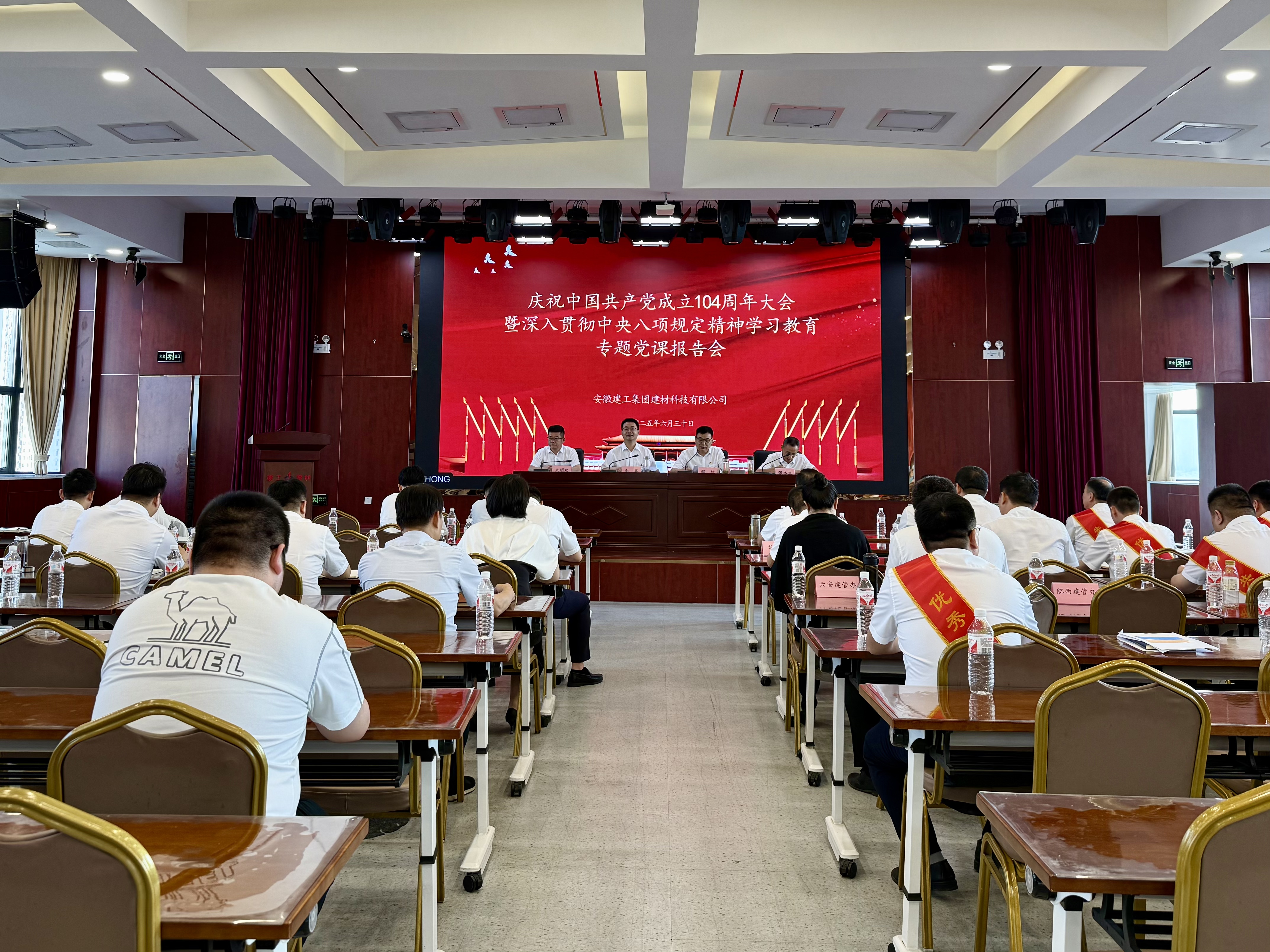 6月30日下午,安徽建工集團建材科技有限公司召開慶祝建黨104周年表彰大會暨深入貫徹中央八項規定精神學習教育專題黨課報告會,公司黨委副書記、董事、副總經理李鑫出席會議并作題為《鍥而不舍落實中央八項規定精神,以作風建設新成效推進建工建材高質量發展行穩致遠》的專題黨課。公司黨委委員、工會主席、副總經理邵佳主持會議,公司領導班子成員出席會議。