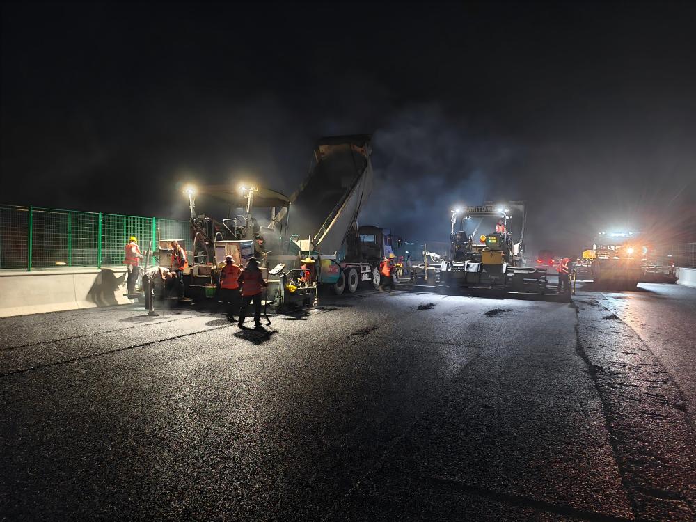 近日,合肥持續(xù)迎來高溫天氣,新途建材廣大職工堅(jiān)守S90高速瀝青攤鋪等項(xiàng)目一線,戰(zhàn)高溫、保供應(yīng)、穩(wěn)生產(chǎn)。在滾燙的路面上,攤鋪機(jī)穩(wěn)步推進(jìn),壓路機(jī)往復(fù)碾壓,建設(shè)者們揮汗如雨,用責(zé)任與擔(dān)當(dāng)筑牢城市交通脈絡(luò)。