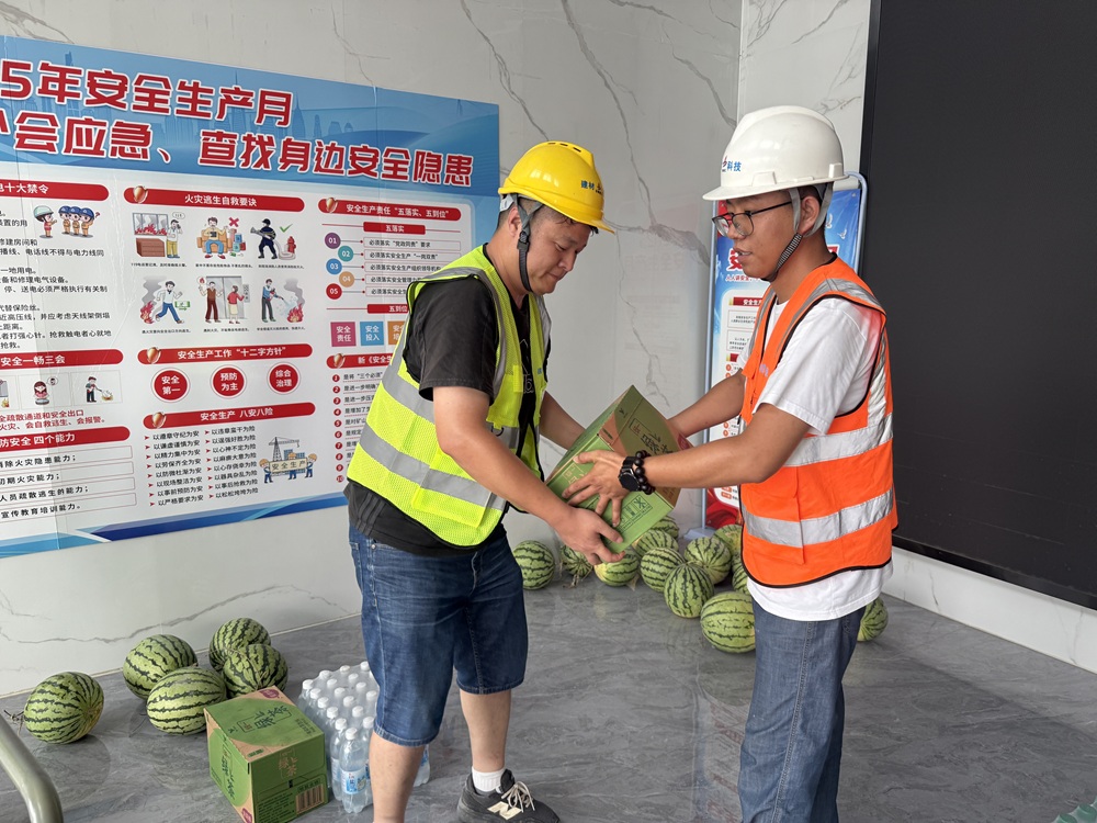 堅守的背后,是公司強有力的“清涼”保障。公司黨支部與工會迅速行動,撐起“遮陽傘”,送上“清涼風”:甘甜的西瓜、冰爽的礦泉水、解暑的藥品第一時間送達生產第一線;食堂每日熬制清甜綠豆湯,驅散暑氣;廣泛普及中暑預防、應急處置等實用知識,為員工健康護航。