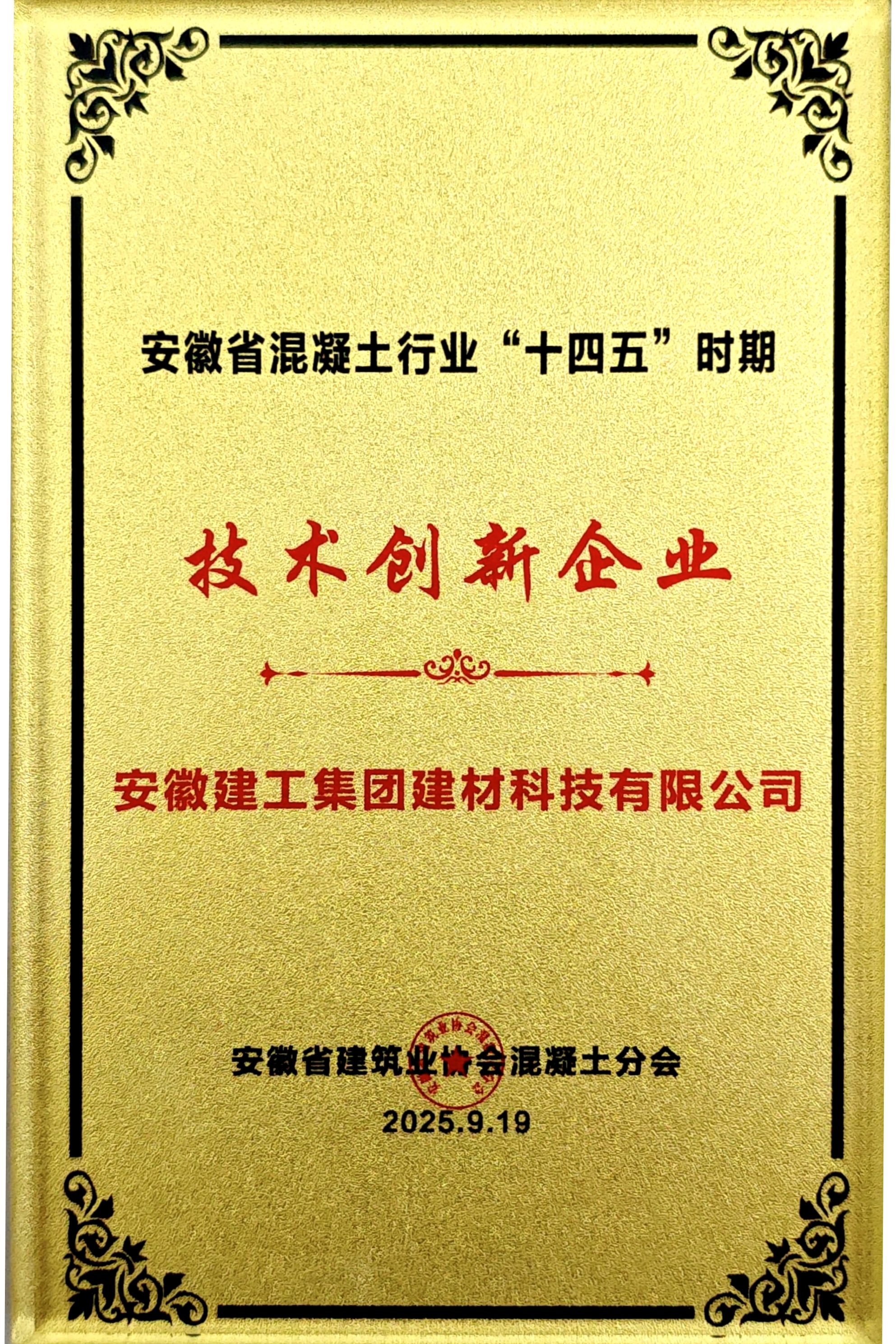 建工建材榮獲安徽省混凝土行業(yè)“十四五”時(shí)期“技術(shù)創(chuàng)新企業(yè)”稱號(hào)