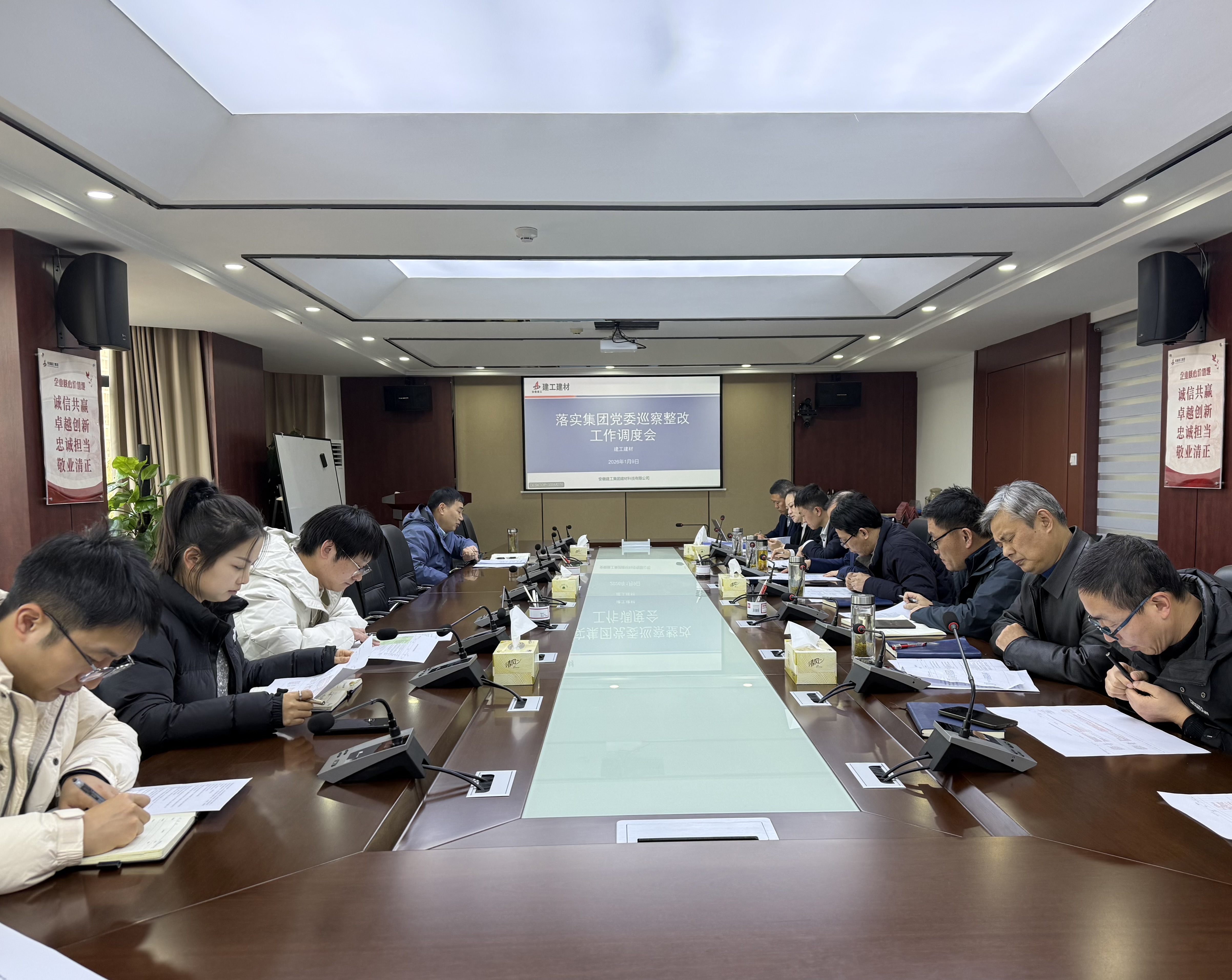1月9日下午建工建材召開落實集團黨委巡察整改工作調度會,全面總結前一階段整改工作進展,對下一步整改工作進行再部署、再推進、再壓實。公司黨委委員、副總經理、工會主席邵佳主持會議并講話。