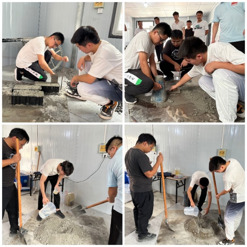 本次競賽科目為“C30混凝土配合比設(shè)計(jì)及試拌”,參賽人員以小組為單位分工配合,按照規(guī)范設(shè)計(jì)配合比、精細(xì)稱取原材料、據(jù)實(shí)調(diào)整混凝土拌合物狀態(tài)、嚴(yán)謹(jǐn)測試混凝土工作性能、標(biāo)準(zhǔn)制作混凝土強(qiáng)度試件。競賽過程中,現(xiàn)場評(píng)委緊盯選手操作的每一個(gè)細(xì)節(jié),嚴(yán)肅執(zhí)行評(píng)比打分規(guī)則,賽后對(duì)每組的實(shí)操進(jìn)行點(diǎn)評(píng)指導(dǎo),充分做到了以賽促教、以賽促學(xué),激發(fā)全體技術(shù)人員的技能提升熱情。
