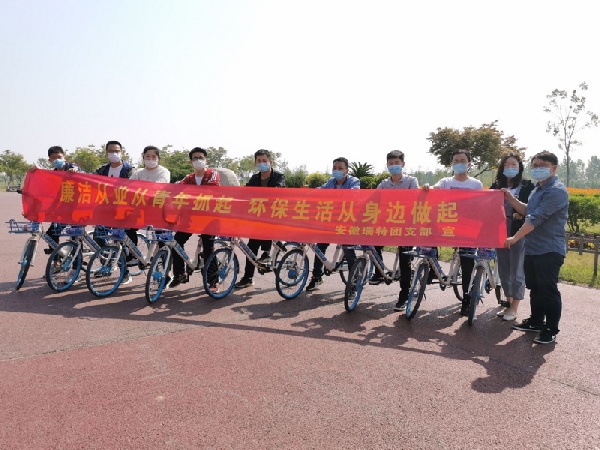 在濱湖岸上草原,安徽瑞特青年員工積極響應主動開展環保生活從身邊做起的倡議活動,用環巢湖騎行活動倡導綠色出行理念,用保護自然環境行動踐行愛國衛生責任。充分展現安徽瑞特青年“保護環境從我做起”向上的精神風貌。